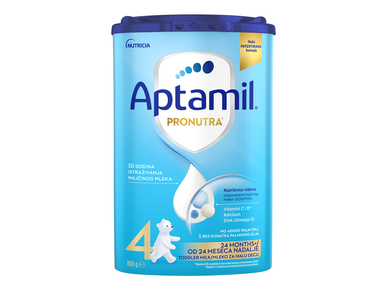 Lactose (from cow's milk), Skimmed cow’s milk, Maltodextrin, Galacto-oligosaccharides (from cow's milk), Whey product (demineralized whey, whey concentrate) (from cow's milk), Vegetable oil (Rapeseed oil, Sunflower oil, High oleic sunflower oil, Coconut oil), Tricalcium phosphate, Fructo-oligosaccharides, Calcium carbonate, Fish oil, Potassium citrate, Magnesium hydrogen phosphate, Sodium citrate, Potassium chloride, L-Ascorbic acid, Emulsifier (Soy Lecithins ), Choline chloride, Flavour (Vanillin), Ferrous sulphate, Inositol, Magnesium chloride, Sodium L-ascorbate, Zinc sulphate, Antioxidant (Ascorbyl palmitate), Calcium D-pantothenate, DL-alpha tocopheryl acetate, Nicotinamide, Riboflavin, Retinyl palmitate, Cholecalciferol, Pyridoxine hydrochloride, Thiamin hydrochloride, Potassium iodide, Pteroylmonoglutamic acid, Phytomenadione, D-Biotin, Cyanocobalamin.